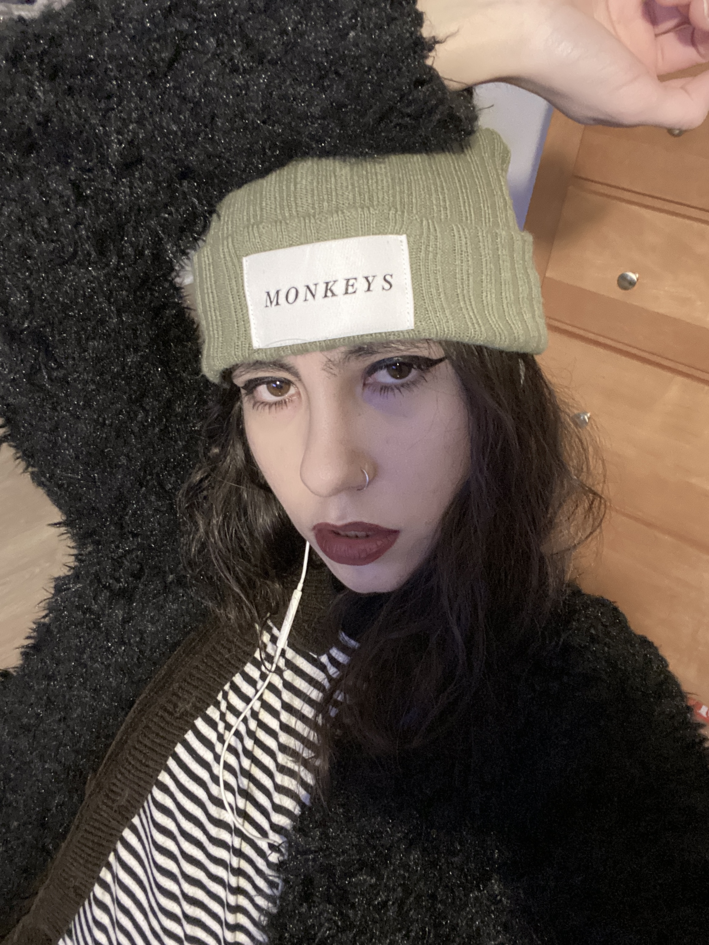 i went to buy myself a bottle of bailey's, which i always do around christmas. the walk took a bit longer than it normally would have because i had to be careful not to slip, strategically stepping around the ice patches and dirty slush on the pavement. i then went to the dollar store to buy some chocolate and a christmas card to mail to my friend. as a approached the entrance, a girl held the door open for me and compliemented the arctic monkeys beanie i was wearing. that made me happy.